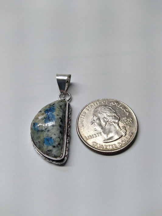Pendant, Sterling Silver, K2 Stone, Half Circle Left