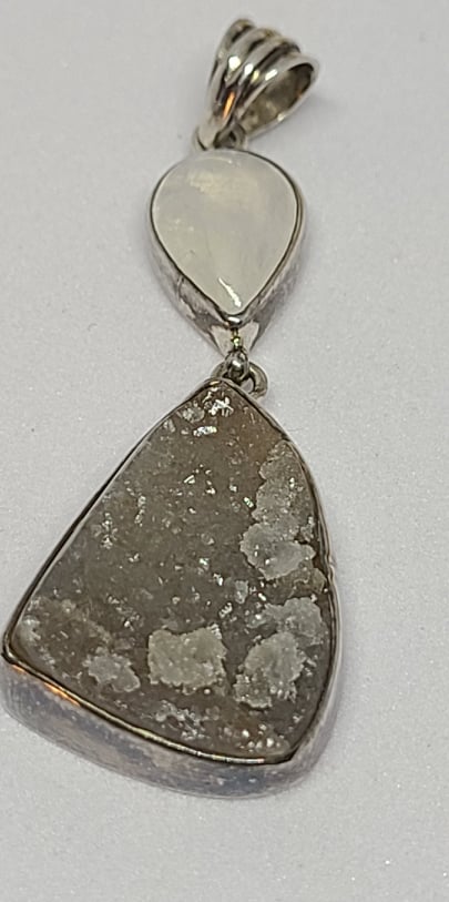 Pendant, Sterling Silver w/ Druzy agate and Moonstone