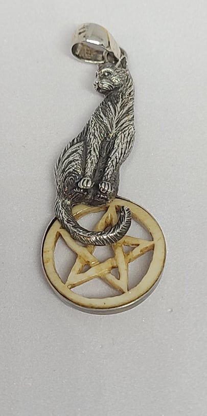 Pendant, Sterling Silver Dragon and Bone Pentagram