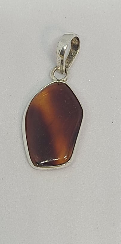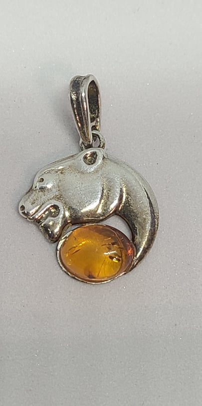 Pendant, Sterling Silver and Baltic Amber with Filigree (lion)