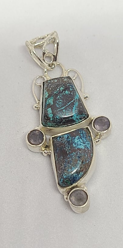 Necklace, Sterling Silver with Azurite and Chrysocolla