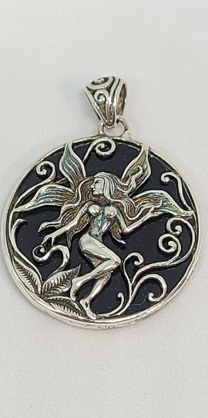 Pendant, Sterling Silver Fairy and Mother of Pearl Backdrop
