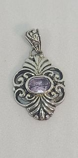 Gemstone Pendant, Filagree Amethyst and Sterling Silver