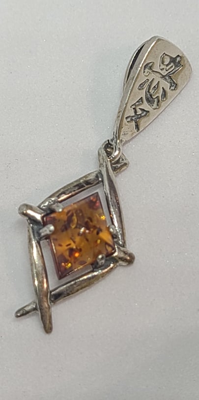 Pendant, Sterling Silver and Baltic Amber with Filagree