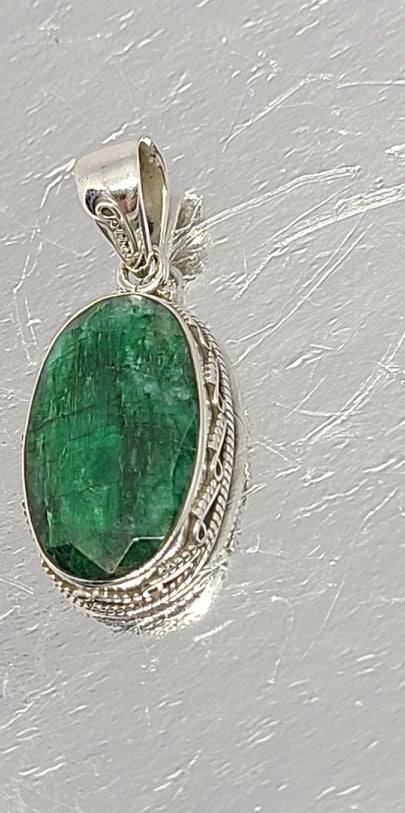 Necklace, Sterling Silver with Faceted Green Sapphire