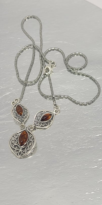 Necklace, Sterling Silver with Baltic Amber