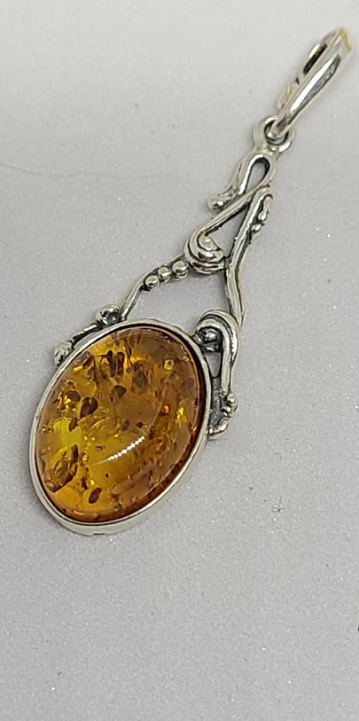 Gemstone Pendant, Baltic Amber in Sterling Silver