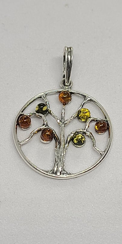 Necklace, Sterling Silver Tree of Life with Baltic Amber